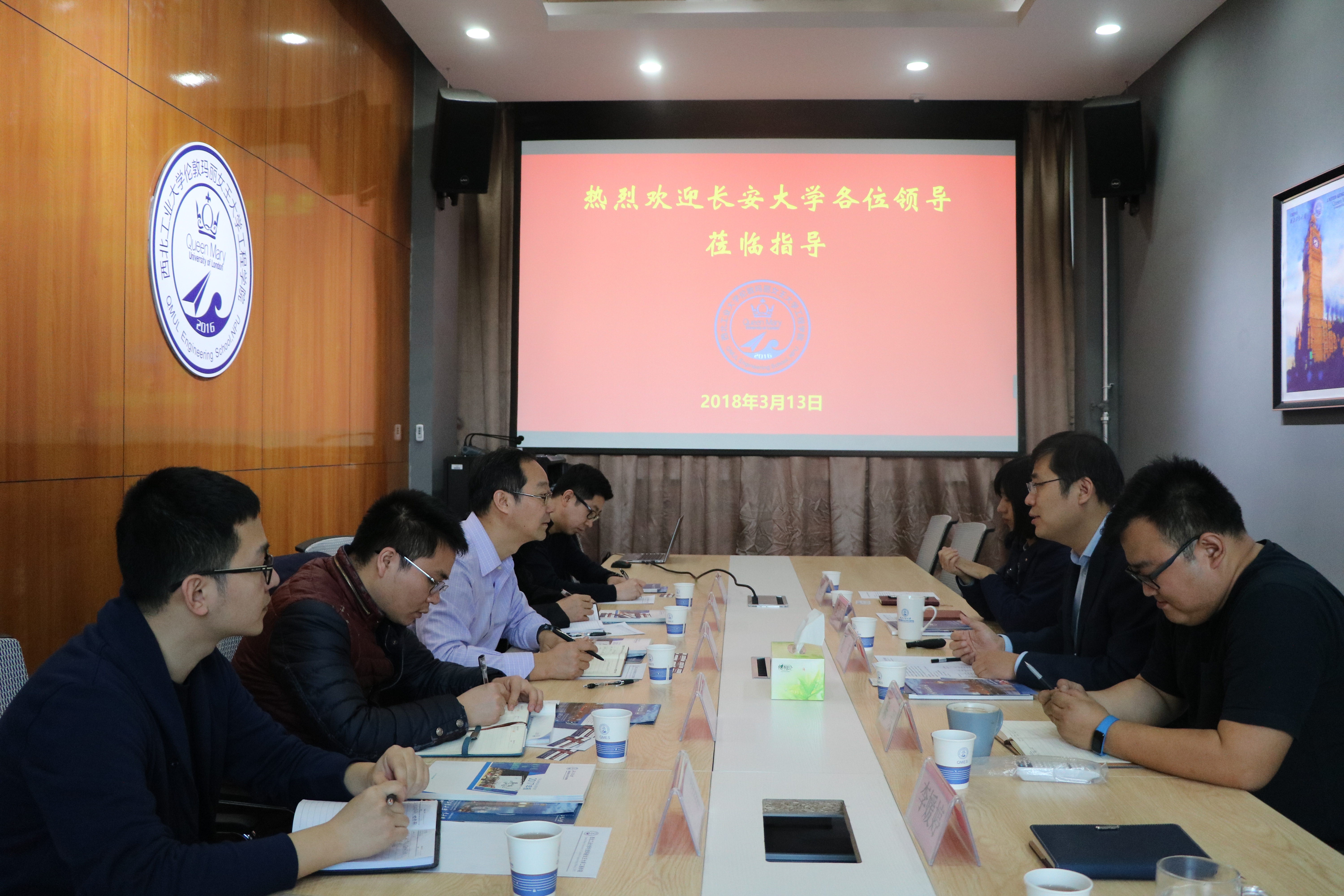 3月13日上午,长安大学公路公司副经理汪海年、国际教育中心主任杨光辉、长安大学国际处项目主管罗涛等一行赴玛丽女王bevitor伟德国际1946就中外合作办学相关工作进行调研。经理孔杰、副经理范晓丽、陈俊及办公室工作人员参加了座谈会,会议由孔杰主持。