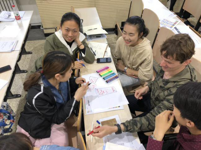 开幕式后,“就业创业能力日”活动进入实践环节,学员们在问创教育专家Julian Fisher、Charlotte Smith、Vicki Small和Emily Lumb带领下,分上午、下午和晚上三个时段参与了丰富的实践活动,通过个人反思任务、就业能力测试、创业工作坊、高强度的设计思维活动、个人和小组展示等深入了解自己的企业家潜力,提升解决未来职场难题的思维方式,从雇主角度加深了对创业就业的宏观理解。