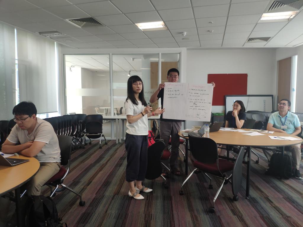 第一周培训期间,各位教师通过讲座了解了教育环境不同观点以及多种因素(包括社会政治背景)对教学实践的影响,并介绍了评估教学效果的方法。随后,伦敦玛丽女王大学国际教学研究中心的教师们围绕教学讲座、团队研讨和教学实践三大模块,向参加培训的教师们展现了国际先进教学理念,介绍了以员工为中心的教学思维(Active Learning)、混合式教学模式(Blended Teaching)、任务型课堂模式和基于问题的学习方式(Problem-based Learning)等各种国际先进的全英文教学方法与技能,开展了以反馈、学习效果评价、主动学习、高等教育国际化、教学语言及混合式教学等几大主题的教学工作坊。另外,所有教师一起讨论分析了当前高等教育国际化面临的机遇与挑战。随后,来自韩国首尔国立大学的Hiwon Yoon教授给为各位教师讲解了“教学语言的合理使用在教学过程中的重要性”。