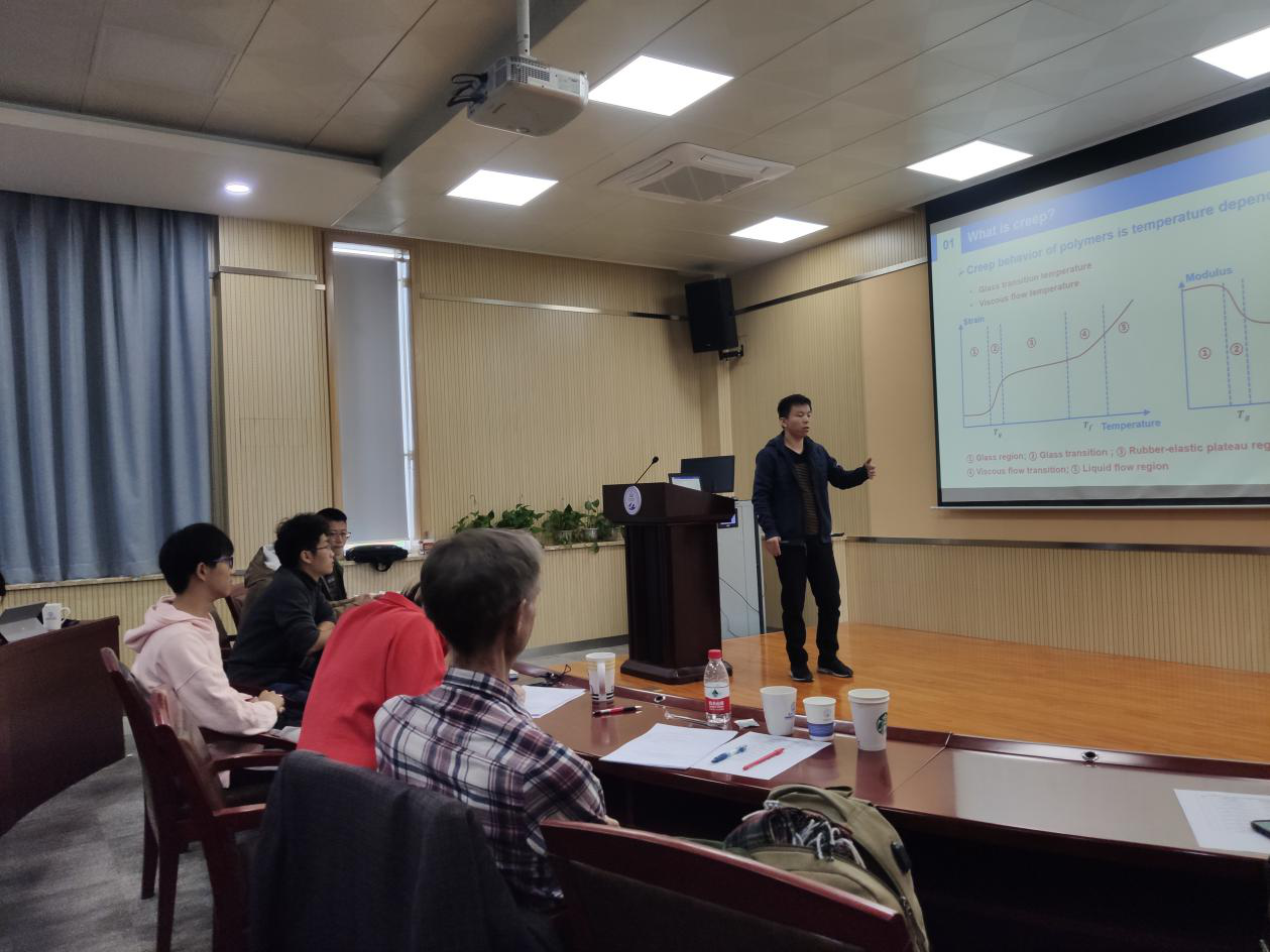 杨未柱老师讲解的课程是《高分子失效(Failure of Polymers)》,他从现象角度结合丰富的图表深入讲解高分子失效的核心概念:蠕变(Creep)的定义。高分子产品设计(Polymer Product Design)课程由庄强、徐婷婷两位老师进行授课。庄强老师在PPT中利用丰富而细节清晰的高分子成型原理图为大家介绍了高分子材料成型工艺的多样性。徐婷婷老师向听众详细介绍了她的课程设计,并介绍了高分子材料的丰富应用。徐老师在授课中积极与员工交流,使员工课堂参与感提升。最后,史学涛老师讲解了《高分子成型(PolymerProcessing)》课程。史老师不断向员工抛出问题,引领员工构建高分子加工程序、高分子材料结构与高分子材料性能之间的逻辑框架,促使员工在不同知识板块之间产生联系。