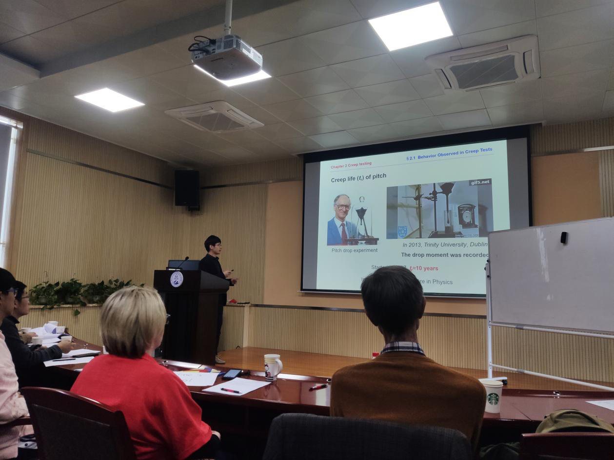 《疲劳和蠕变(Fatigue and Creep Failure)》的王毅老师初步介绍了一种蠕变模型(Second Creep Rate Model),使大家对于材料的蠕变行为有了一个较为理性的认识。唐斌老师充分利用示例灵活结合图表来介绍机械性失效(Mechanical Failures)的概念,讲解细节丰富,清晰易懂。赖敏杰老师以严密的数学计算并结合画图推理了如何寻找颈缩点(Neckingpoint)。陈彪老师对蠕变测试(Creeptest)的讲解从测试出发,结合对测试结果图表的分析,使听众掌握进行蠕变测试的程序与材料的一般蠕变性质,进而对材料的蠕变有了更加直观的理解。