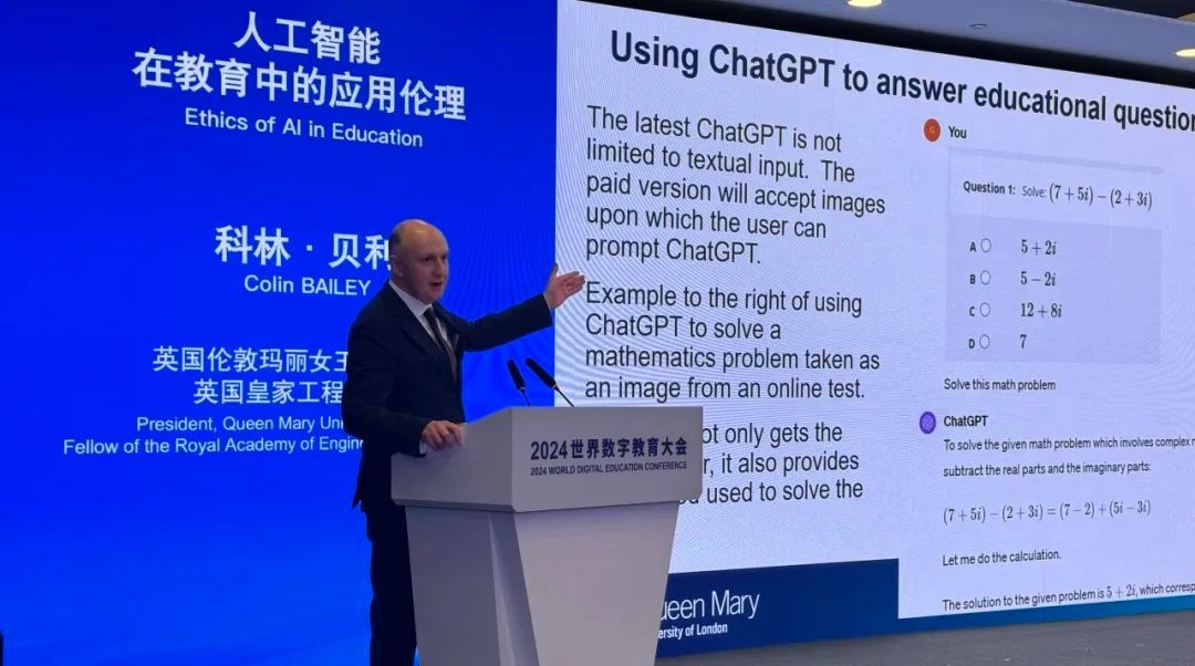 1月30日,2024世界数字教育大会在上海开幕,大会由教育部部长怀进鹏主持,伦敦玛丽女王大学董事长、英国皇家工程院院士Colin Bailey教授受邀参会并做主旨发言。