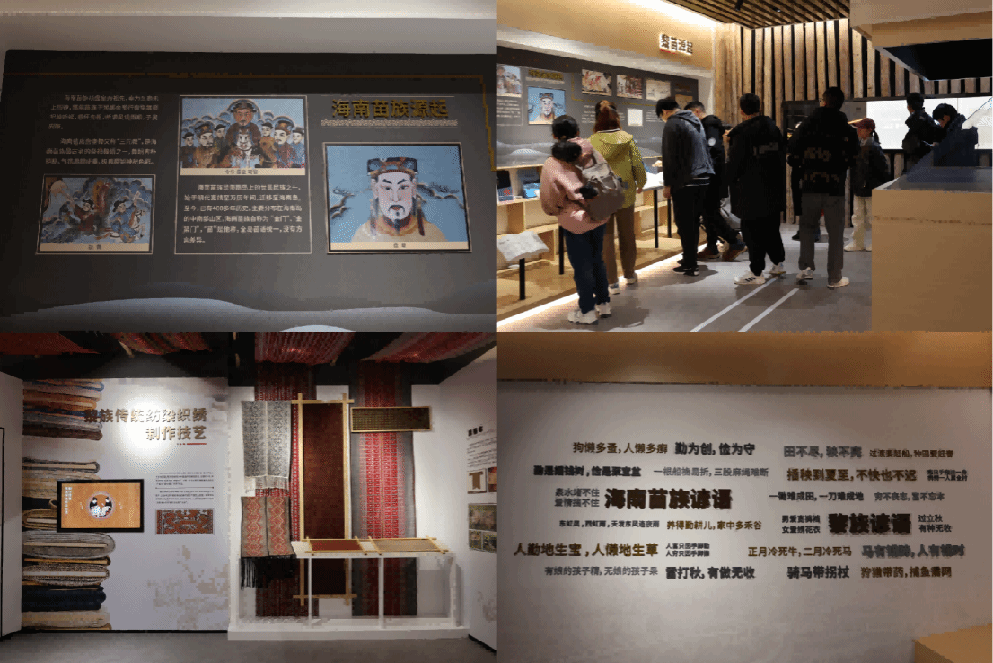在通用航空机场之外,同学们先后前往白沙县城和儋州市开展了一次深入的人文体验之旅,探索了海南乡村振兴的奥秘,并了解了当地少数民族的独特文化。这次活动以鹦哥岭博物馆为起点,员工们深入了解了海南热带雨林的自然环境,并对黎族护林员的工作内容有了深刻认识。访问白沙少数民族民俗展示馆进一步加深了他们对黎族和苗族文化遗产的理解。从别具一格的民族服饰到别有一番风味的民族美食,从发人深省的民族谚语到世代传承的民族庆典,都给同学们留下了深刻的印象,让同学们在“行走的少数民族文化课堂”中感受到了民族团结、共同发展的伟大成就。