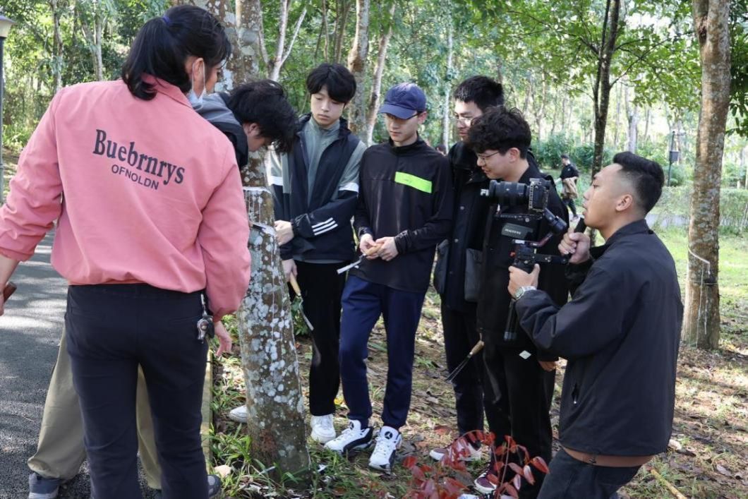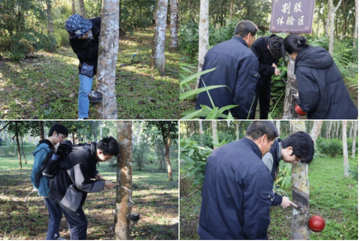 随后,员工们前往儋州市的金林春晓农庄,积极参与了采摘和其他农业劳动活动,并进入橡胶林亲自体验了割胶和收集胶水的过程,深刻体会到劳动成果的珍贵。期间,儋州市电视台的健康栏目对同学们进行了采访,他们热情地分享了在农庄割胶的经历和通过此次研学之旅中的感悟。
