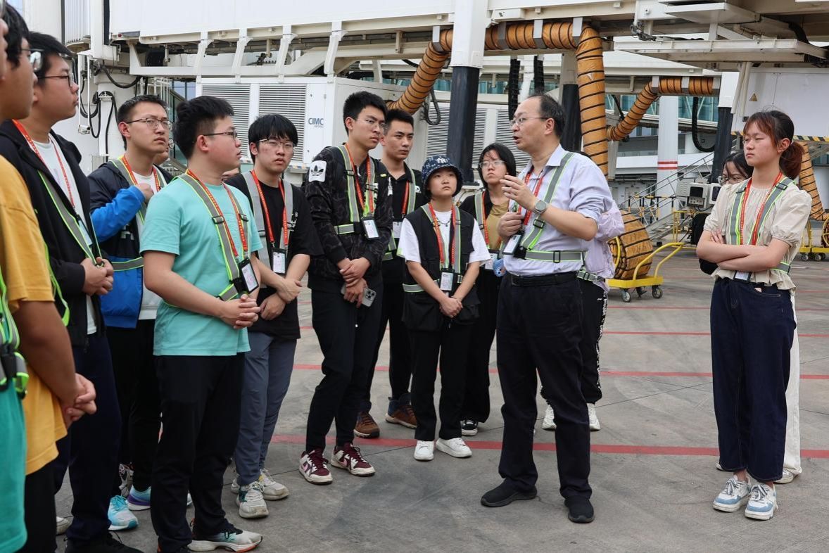 下午,魏天带领实践队现场观摩了某型号固定翼飞行器的飞行特技表演,极大地激发了同学们对航空领域的兴趣。随后,魏天以现实中经历的飞行事故为例,向大家介绍了飞行时不同类别的紧急事件及应对措施。