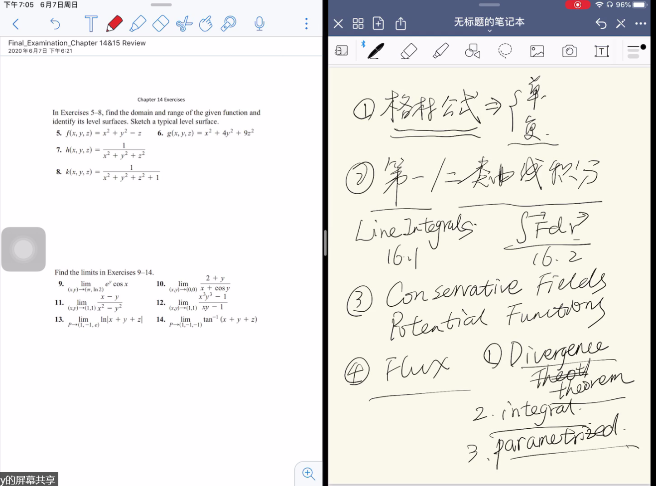 李璨主要从高等数学备考方法、14章、16章重点内容两方面进行了讲解。对于备考方法,李璨提出,要重视课后作业的独立完成、同学之间的交流互助,将有限的练习效果最佳化,在平时的学习中就为考试积累足够的素材。在14章的讲解中,李璨重点讲解了梯度向量的推导及应用、切面、法线及线性化拟合的误差分析、临界点的判定、Lagrange乘子的推导及应用;在16章的讲解中,李璨重点讲解了高频考点:第一类、第二类曲线积分的应用及区分、保守场的判定与势函数的求解、复连通问题下的格林公式应用、曲面通量的三种解法、曲面面积的常规求法与参数化表示。