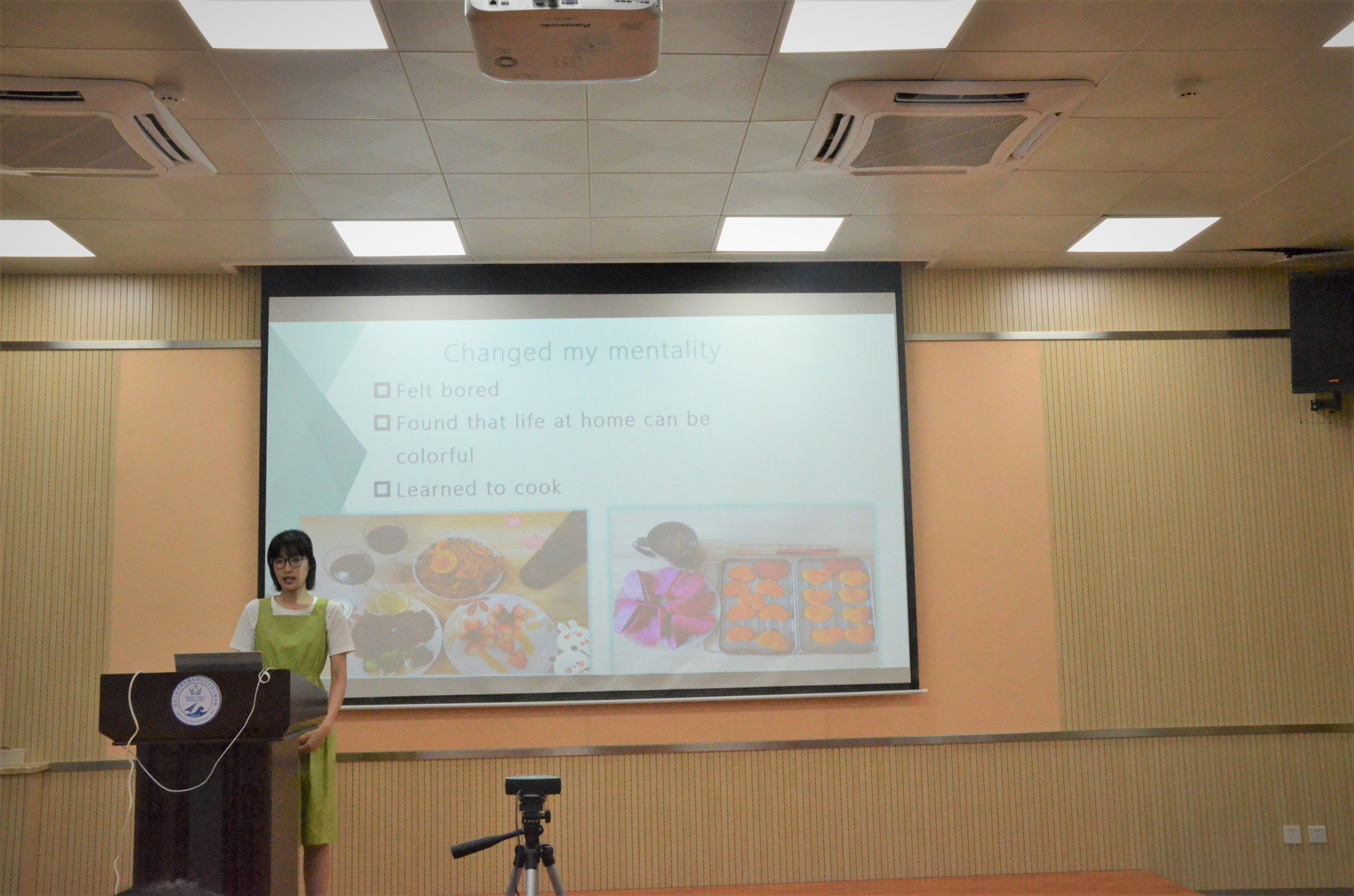 在比赛过程中,各位选手按照先前随机决定的演讲顺序依次上台。结合自己的PPT,以演讲和展示相结合的方式分享了自己在因疫情带来的超长假期中的个人经历。江宇轩同学在演讲中不仅讲述了自己身边的抗疫故事,还结合更宏观的叙事:“This outbreak reminded me of a saying noted by President Xi: every drop in the sea has its unique value; every effort an individual makes contributes to the Chinese Dream. Ordinary people like us who persevere in their ordinary duty are those heroes in society!”表达了对每位平凡英雄的敬意。陈雨箬同学分享了自己在假期中完成的”24小时学习挑战”,引起了评委老师和同学们的浓厚兴趣。她也表示“I did not expect 'learning continuously for 24 hours' was the center of concentration of all the judges. Judges' questions were mostly about this topic, and after the speech contest, a lot of students asked me about this challenge, feeling like 'I made this challenge famous'. So, this may be my most unforgettable moment. But accepting this challenge was definitely not a good thing for it really damaged your health and your nerves.“。李楚佳同学分享了自己在家中的厨艺提升,她清晰的表达和地道的发音也博得了评委老师们的一致好评,回顾自己的表现,她说:”During my speech, I mentioned some gourmet food I made when I was at home, which aroused Miss Agne’s interest. At the end of my speech, some smart tips were given to help everyone regulate our mental health and life at home. In the Q&A session, I also briefly told teachers what I acquired during this colorful stay-at-home experiences.“。最终,这三位同学凭借着精彩的表现、丰富有趣的演讲内容获得了本次比赛的一等奖。