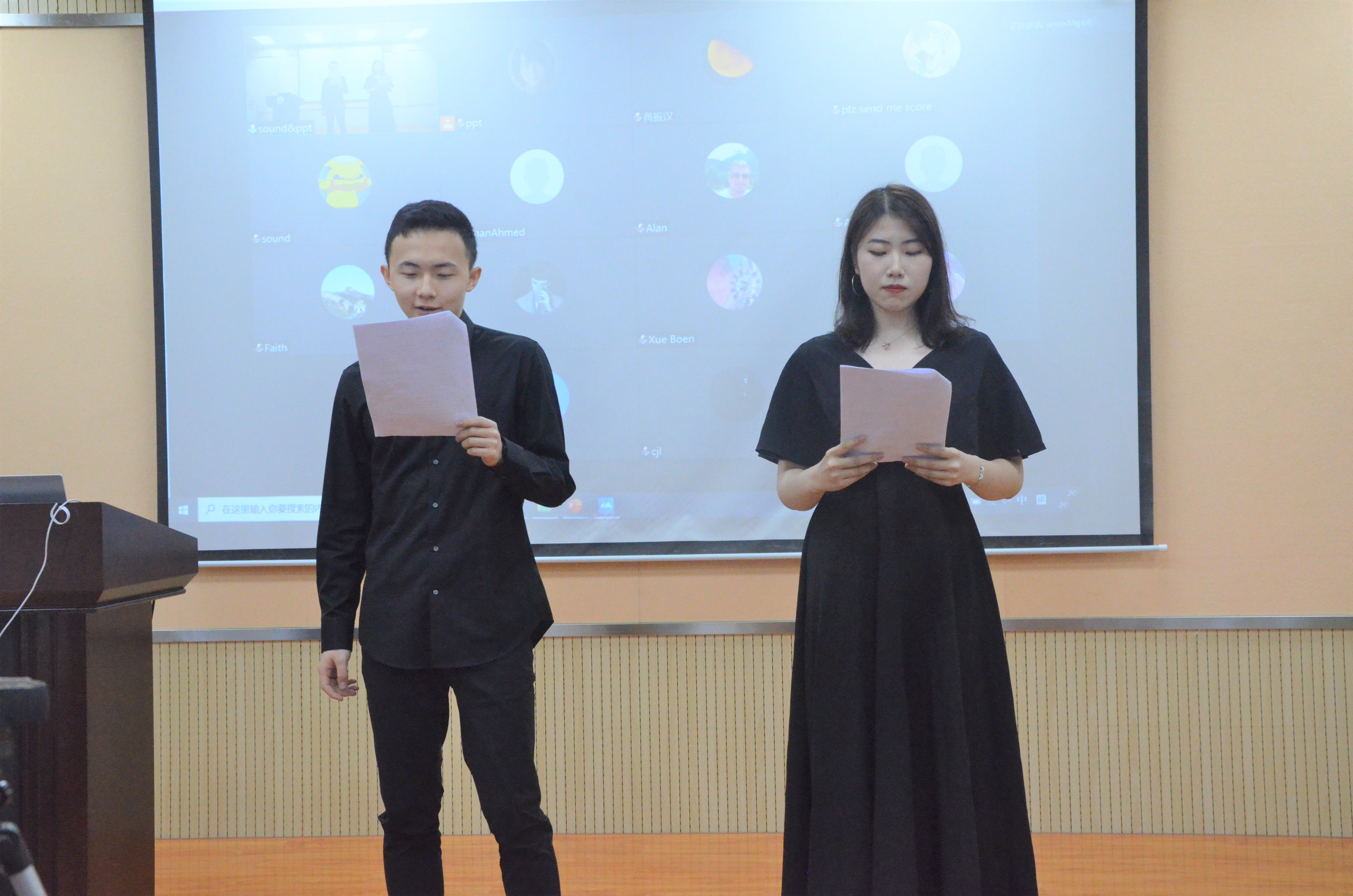 受疫情影响,本次决赛采用线上线下结合的方式举办,玛丽女王bevitor伟德国际1946副经理陈俊及英方教授Alan Allman, Faith Nightingale, Agne Kocnev和Luqman Khlil Ahmed通过线上会议参加此次比赛,并作为评委打分点评。比赛由玛丽女王bevitor伟德国际19462019级员工赵思同、张雪辰主持。