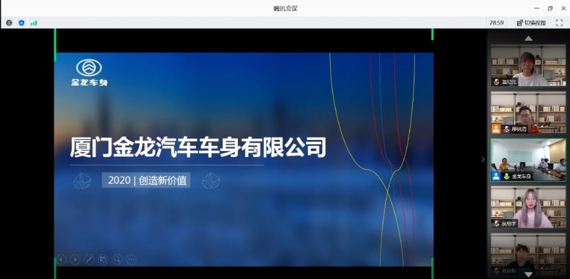 为调研民用材料在企业的应用情况以及当前毕业生就业前景,7月23日,西北工业大学“聚焦三航材料,调研军工民用材料应用现状”实践队与厦门金龙汽车车身有限公司通过腾讯会议平台召开座谈会。厦门金龙汽车车身有限公司总工程师潘兴志、生产技术部经理钟志达、行政部经理陈玉华、生产管理部方案经理杨鸿强、西北工业大学“聚焦三航材料,调研军工民用材料应用现状”实践队指导老师程茵及实践队全体同学参加会议。