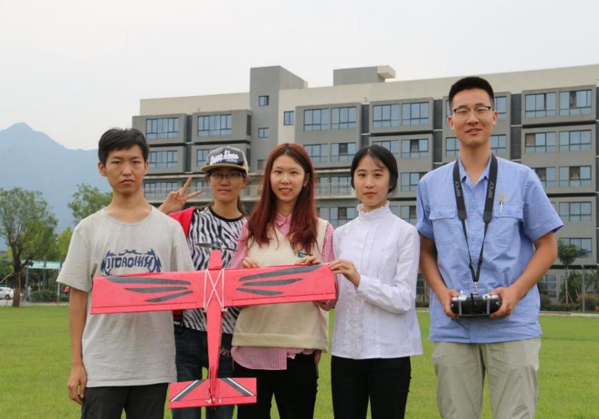 航模创新设计生产实习的老师向同学们展示了如何用制图软件设计航模以及如何使用激光切割机,指导同学们根据他们的设计图纸对木板进行切割或扫描。在老师的细心指导和同学们的精细制作下,最终让飞机平稳的翱翔在空中,并顺利降落。