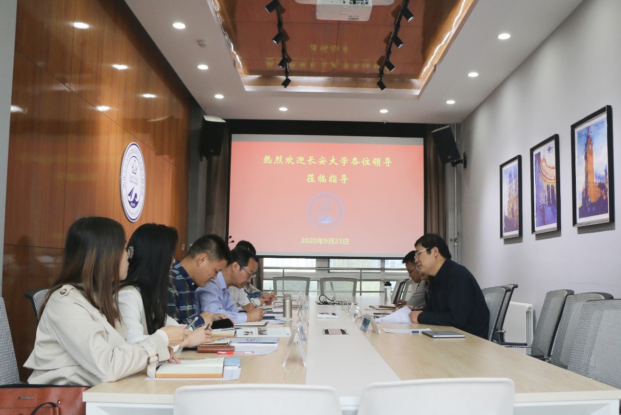 2020年9月23日上午,长安大学长安都柏林国际交通公司书记、经理汪海年一行8人来玛丽女王bevitor伟德国际1946调研,玛丽女王bevitor伟德国际1946经理孔杰、副经理程茵在公司413会议室接待了来宾,公司相关工作人员参加会议。