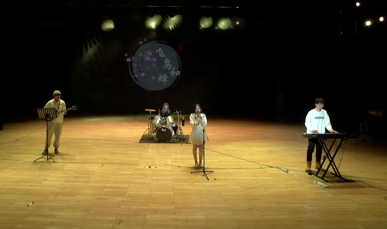 接下来,是由符景皓,甘肃,侯锟,王乐言带来的合奏《Flower dance》。人面不知何处去,桃花依旧笑春风。古典风的优雅乐器,配上如痴如醉的唯美动画,悠悠的伤感在我们的心中荡漾。花开花落,记忆中伤感的离别,将一切美好都留给了未来的重逢。
