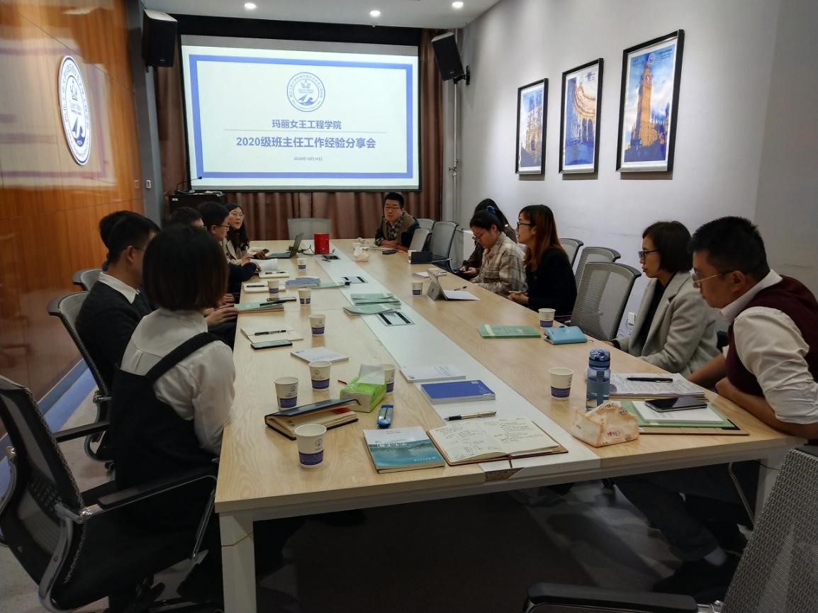 2020年10月16日,西北工业大学伦敦玛丽女王大学bevitor伟德国际1946召开2020级班主任工作经验分享会。本次会议旨在相互分享工作经验,交流工作心得,对班级建设中出现的问题进行讨论,进一步提升新生班主任教育管理班级的能力,以便更好地开展班级学风班风建设工作。会议在公司413会议室举行。2020级全体班主任、2018级班主任代表颜静、常宁辉、2020级辅导员黄拳章及教学办公室相关老师参加了会议。会议由副经理程茵主持。