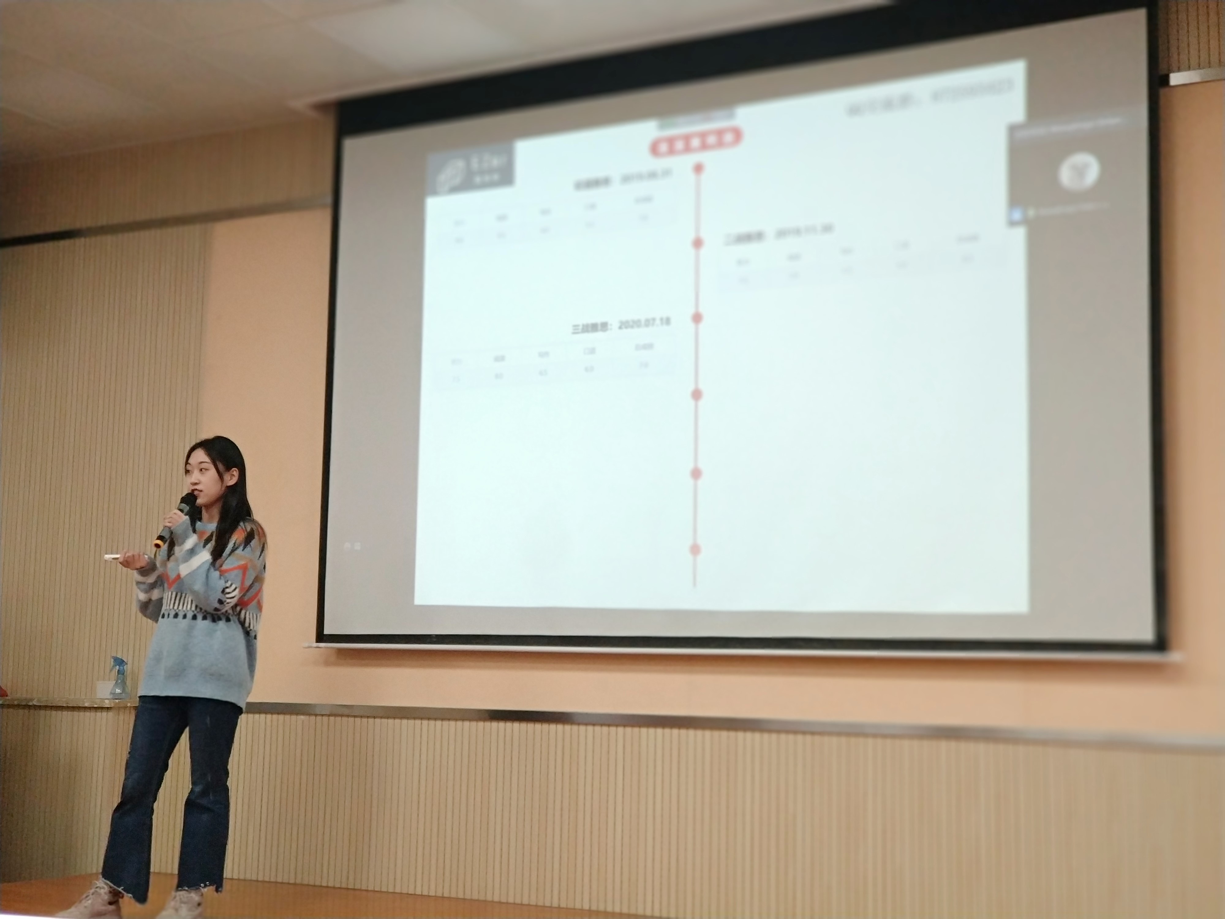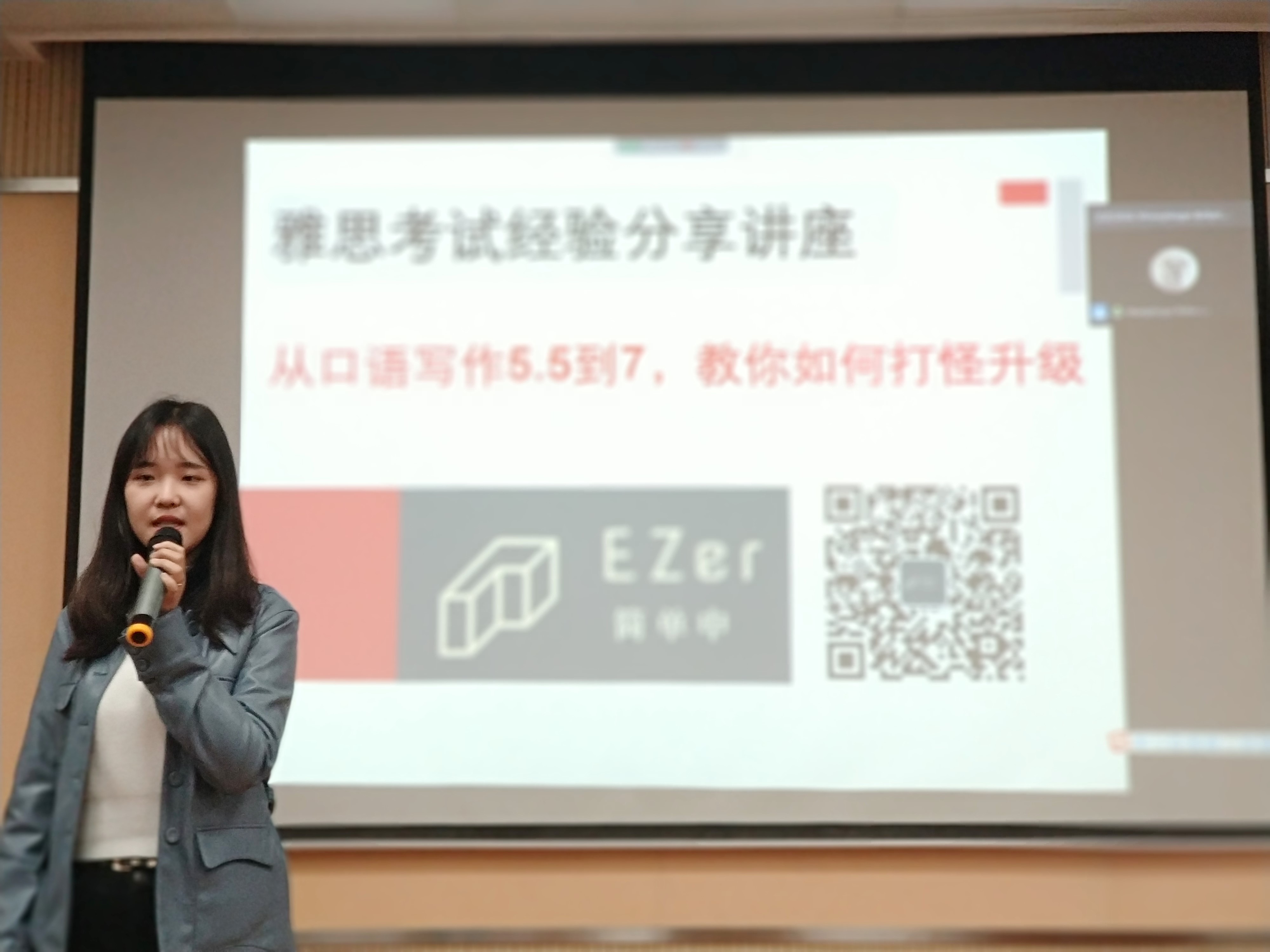 王婷翌从“屠鸭历程介绍”、“简单雅思介绍”、“个人心得(技巧)介绍”和“推荐书籍、APP”这四个板块,和大家分享自己的雅思考试经验。王婷翌曾先后6次参加雅思考试,口语、写作从5.5分提升到7分。每次考试过后,她都要结合成绩和打分准则分析总结自己的不足之处,不断提升自己的综合能力。王婷翌耐心向大家讲解了雅思考试中口语、听力、阅读和写作的题型,针对不同题型分享了自己的练习经验和技巧,介绍了快速提升成绩的小秘诀,例如做听力练习时,用1.25倍速播放等。最后,王婷翌向大家推荐了参考书《剑桥雅思》、雅思哥公众号及小站雅思APP,希望能有效促进同学们的语言学习及成绩提升。