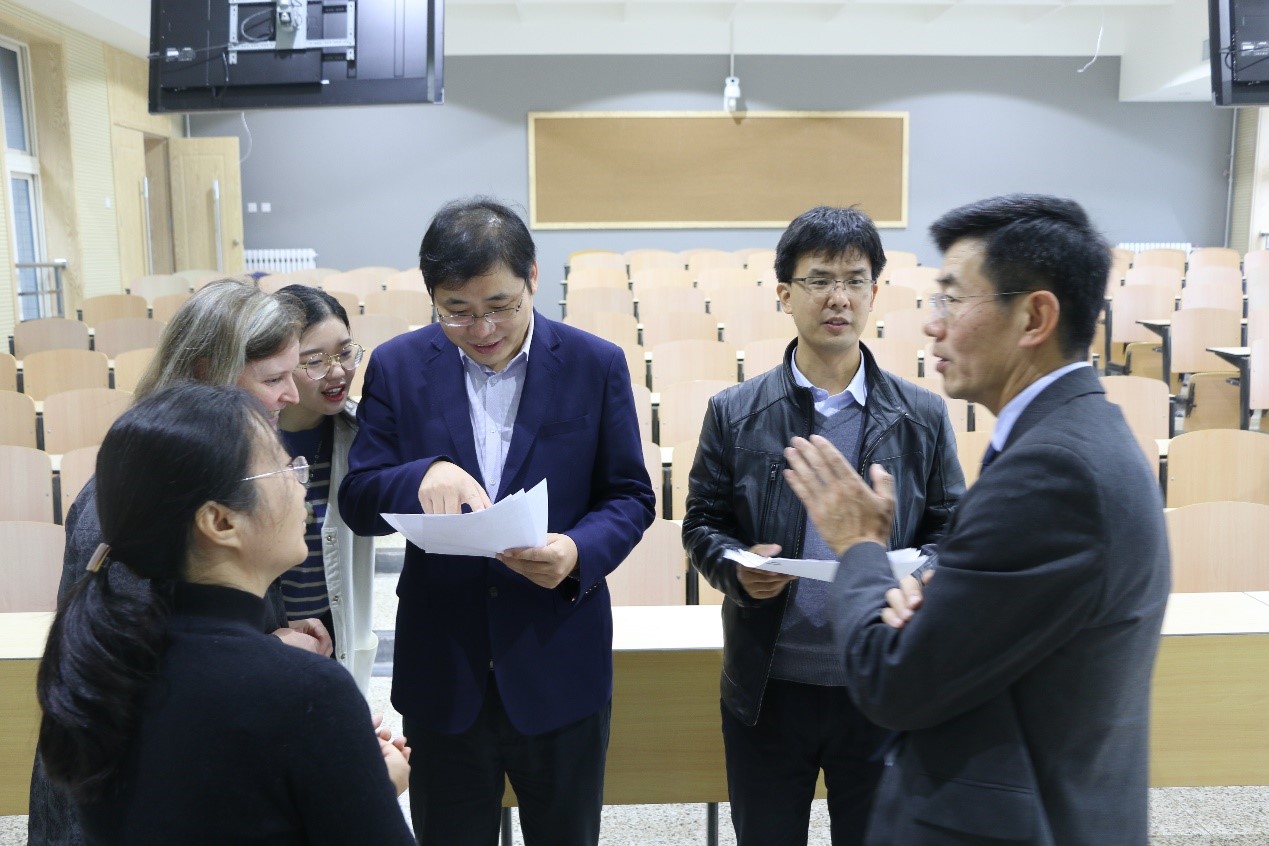 在公司参观过程中,孔杰经理就公司近期运行情况、员工学习与生活情况等与Wen Wang教授一行进行了深入沟通与交流。随后,Wen Wang教授与Anne Parry女士来到《线性代数》课堂,与中方全英文授课教师讨论了授课内容和授课方式,询问了员工课堂反馈情况。