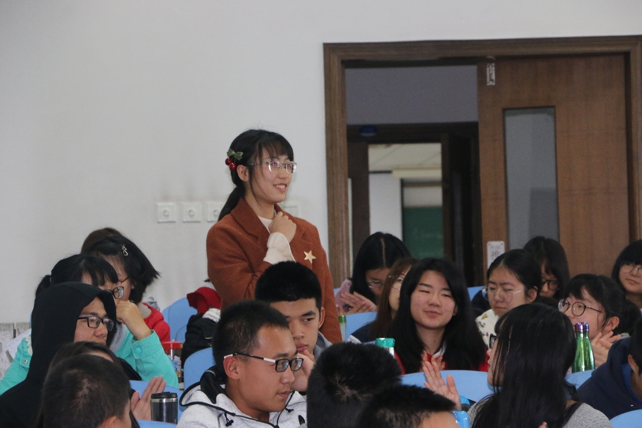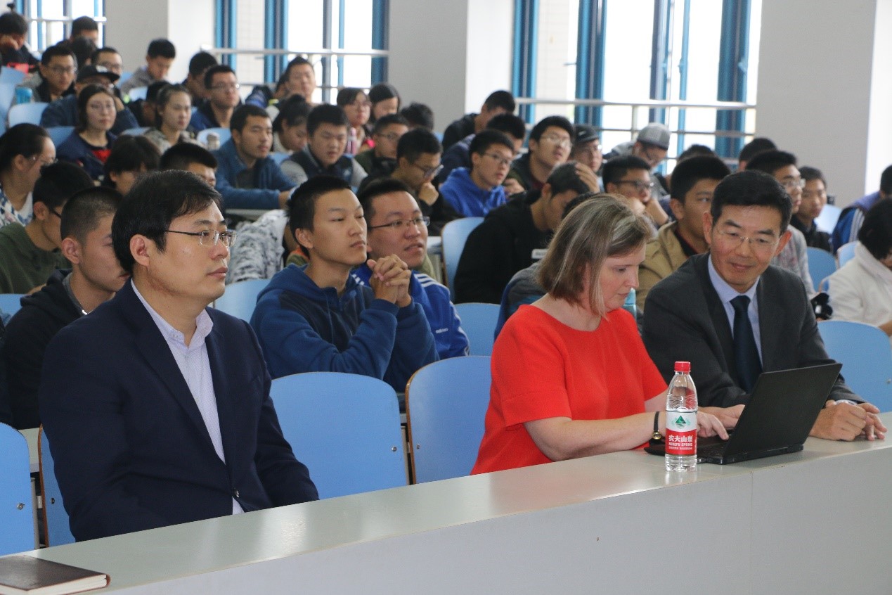 在互动环节,同学们围绕如何适应全英文教学课堂、如何选择今后科研方向、如何准备赴英访问交流等与Wen Wang教授和Anne Parry女士展开了交流。Wen Wang教授从个人的求学和研究经历出发,系统地解答了同学们的疑惑。他强调,在学习过程中同学们要把握好关键性的三点:第一是要学会学习;第二是要有创造力;第三要保持学习兴趣。Wen Wang教授鼓励同学们充分利用好中、英两校优质教育资源,努力提升科研能力和学术素养,以学习兴趣为出发点,以科研创造力为原动力,辅之以合理的学习方法,终将成为具有国际视野、通晓国际规则、具备终生学习能力的复合型创新人才。