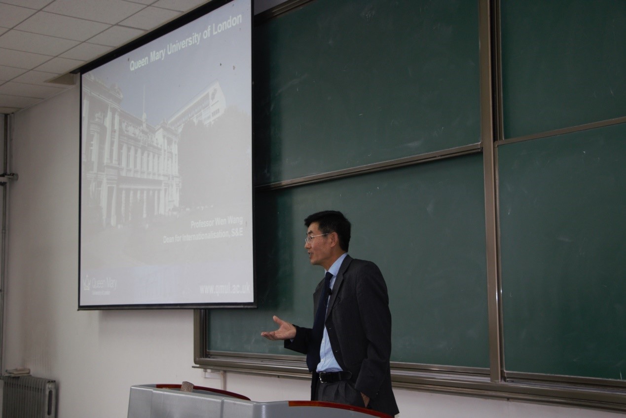 10月20日上午,伦敦玛丽女王大学工程与材料公司经理Wen Wang教授及伦敦玛丽女王大学理工学部执行官Anne Parry女士访问西北工业大学伦敦玛丽女王大学bevitor伟德国际1946(JEI)。Wen Wang教授一行在国际合作处副处长张富利、玛丽女王bevitor伟德国际1946经理孔杰、副经理陈俊的陪同下与公司2017级全体新生举行了学习生活座谈,并参观了公司办公区、员工活动区和互联网智慧教室。