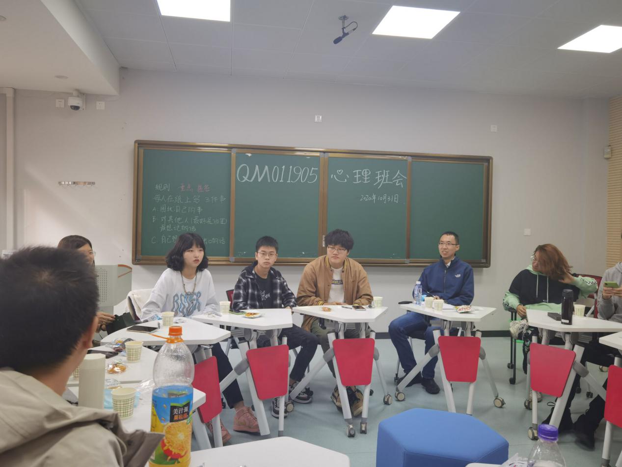 此次活动以畅聊烦恼,答疑解惑的形式展开。首先,大家围成一圈,每人在纸写下三件困扰自己的事或自己对班级同学最想说的话,抑或自己想说却说不出口说的心里话,一切皆以匿名形式,然后以统一方式折好,丢进箱子,以击鼓传花的方式抽取纸条,由抽到纸条的同学宣读问题,并结合自己的经历回答问题。所有同学热情高涨,积极参与,对纸条上每位同学的问题进行深入交流,并分享自己的想法与应对烦恼的措施。