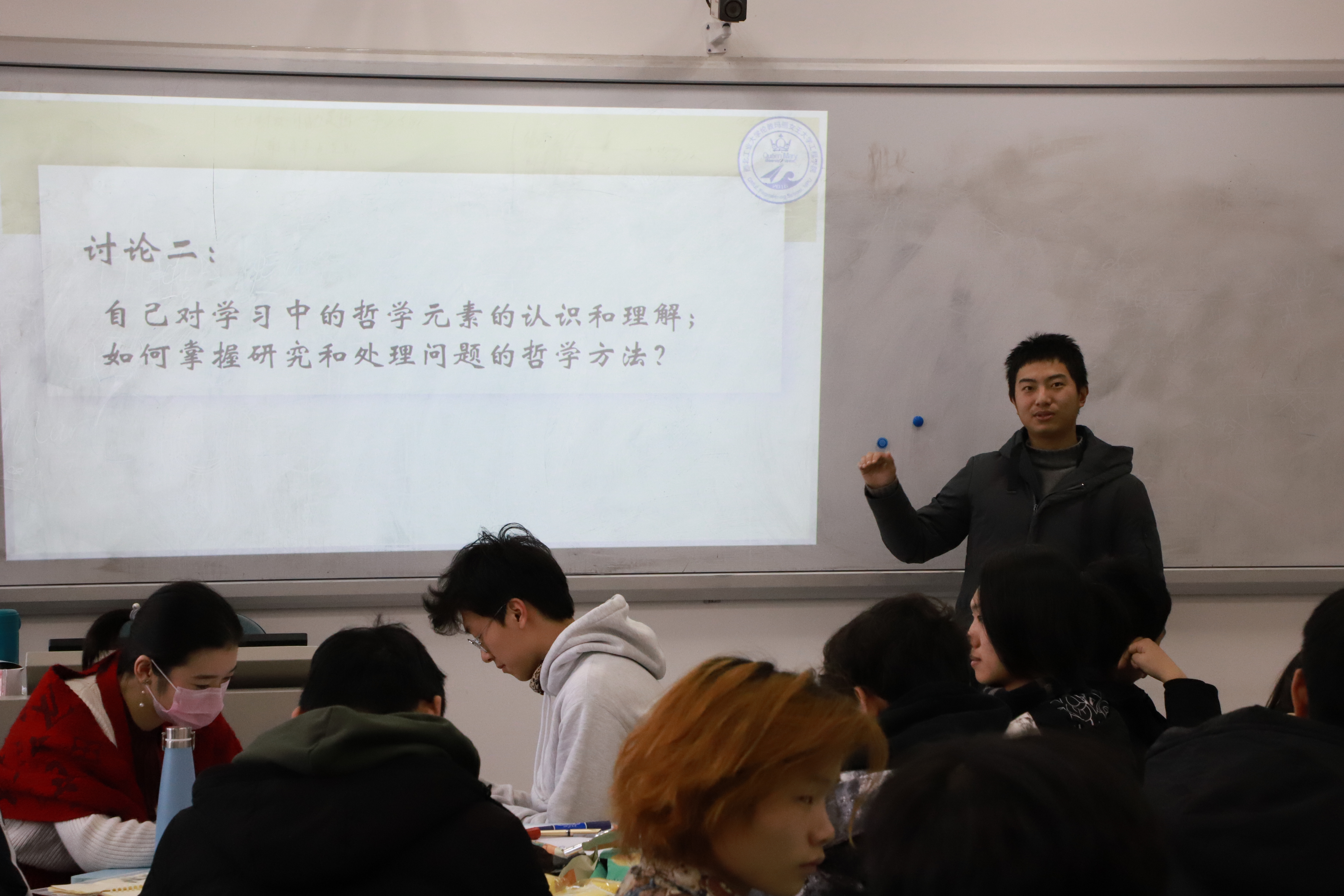 来自女王公司的郑植同学从疫情带来的矛盾如线上教学等问题入手,解释了矛盾的对立统一性,并强调当我们遇到困难与问题时,要放平心态,调动自己的主观能动性以解决矛盾,将劣势转化为优势。杜金波同学结合哲学元素,从唯物主义的角度分析了纳米技术的发展历史,他认为在学习中运用唯物主义辩证法对专业知识的学习大有裨益。