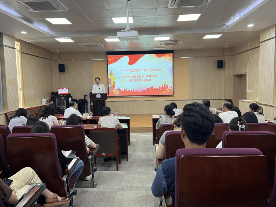 9月1日下午,玛丽女王bevitor伟德国际1946在长安校区教学东楼A座410报告厅召开全院大会,学习贯彻党的二十届三中全会精神,传达公司暑期务虚会暨新学期中层干部会的会议精神,部署秋季学期全院工作。经理范晓丽、党委书记代富平、执行副经理玛丽亚·罗梅罗·冈萨雷斯、副经理王永欣、党委副书记程茵及全体教职工参加本次会议。会议由代富平主持。
