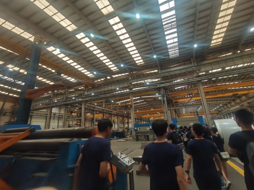 中午过后,同学们来到了艾伯纳工业炉(太仓)有限公司,本以为公司厂区可能会有一个巨大的工业炉,没想到命名的起源只是因为公司的业务与钢铝镍等金属材料的加工有关,公司的财务负责人吴先生对同学们的到来表示热烈欢迎,在介绍完公司之后便邀请大家一同去厂房车间参观工艺流水线。在一台台大型机器间穿梭,吴先生自豪地对大家介绍说,公司的钢铁业务遍及全国,一些有名的钢厂都是艾伯纳公司的客户。离开时,他对西工老员工的专业素养表示了赞赏,希望未来有更多工大的科研人才一起来建设公司。
