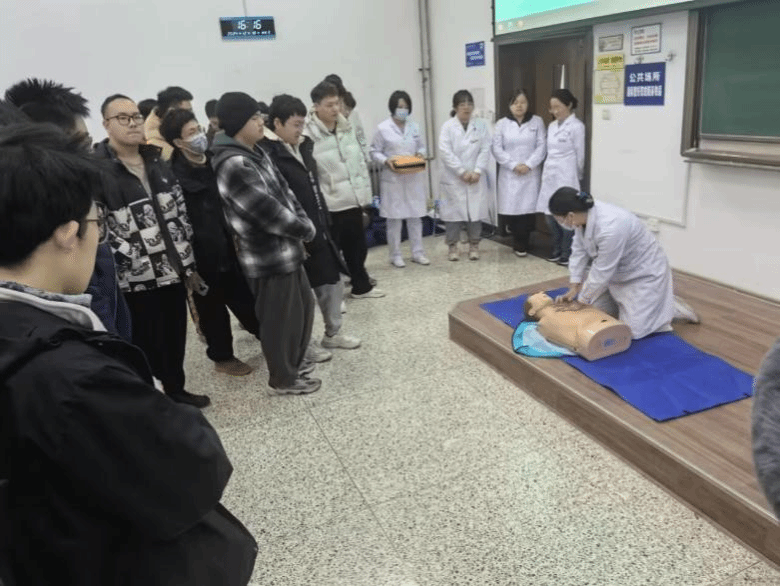 医生们首先为大家科普了一系列自我急救的“小秘籍”,告诉同学们如心肺复苏、应对低血糖、处理关节扭伤等必备的自我急救知识。随后,她们带大家熟悉了在医院的就医流程,让员工们便于就医,遇到紧急情况能够及时、有效就医。最后让大家“实地演练”,为模型病人进行心肺复苏,从而体会到对安全的重视与对生命的尊重。