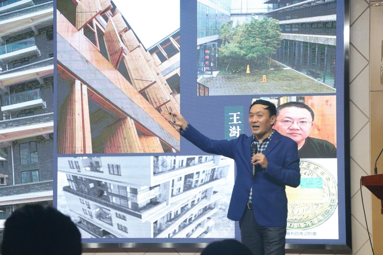 余教授通过讲述中国古代建筑和使用工具,为大家展示了中华民族的文化传统和古人的智慧结晶。同时他还结合当代电子存储器,介绍了汉代彩色丝绸纺织机,形象地向大家介绍了彩色丝绸纺织机超越时代的闪光点。
