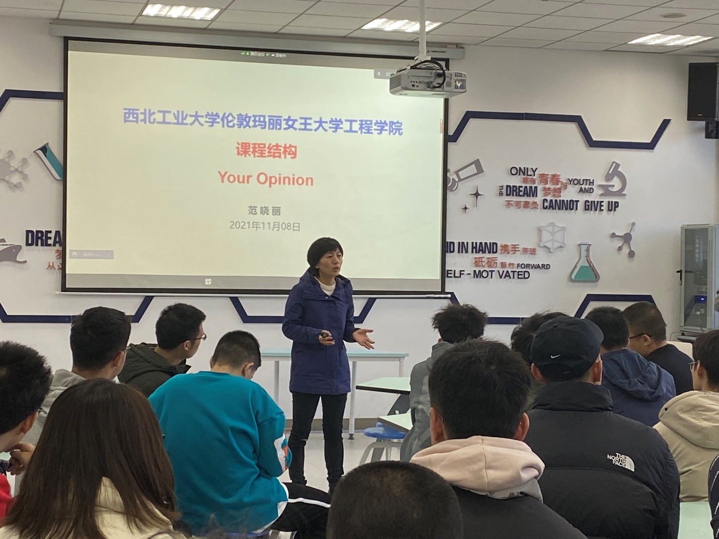 11月8日中午, 玛丽女王bevitor伟德国际1946针对四个年级本科生举行了主题为“以学为主,助你成才” 的师生研讨会。会议邀请公司教学副经理范晓丽、公司员工工作副经理程茵、2021至2018级近百位员工代表,就公司培养目标、培养方案、人才培养模式、毕业设计等进行深度探讨。大二年级辅导员黄拳章、大一年级辅导员庄强以及英方负责人齐玥共同出席。