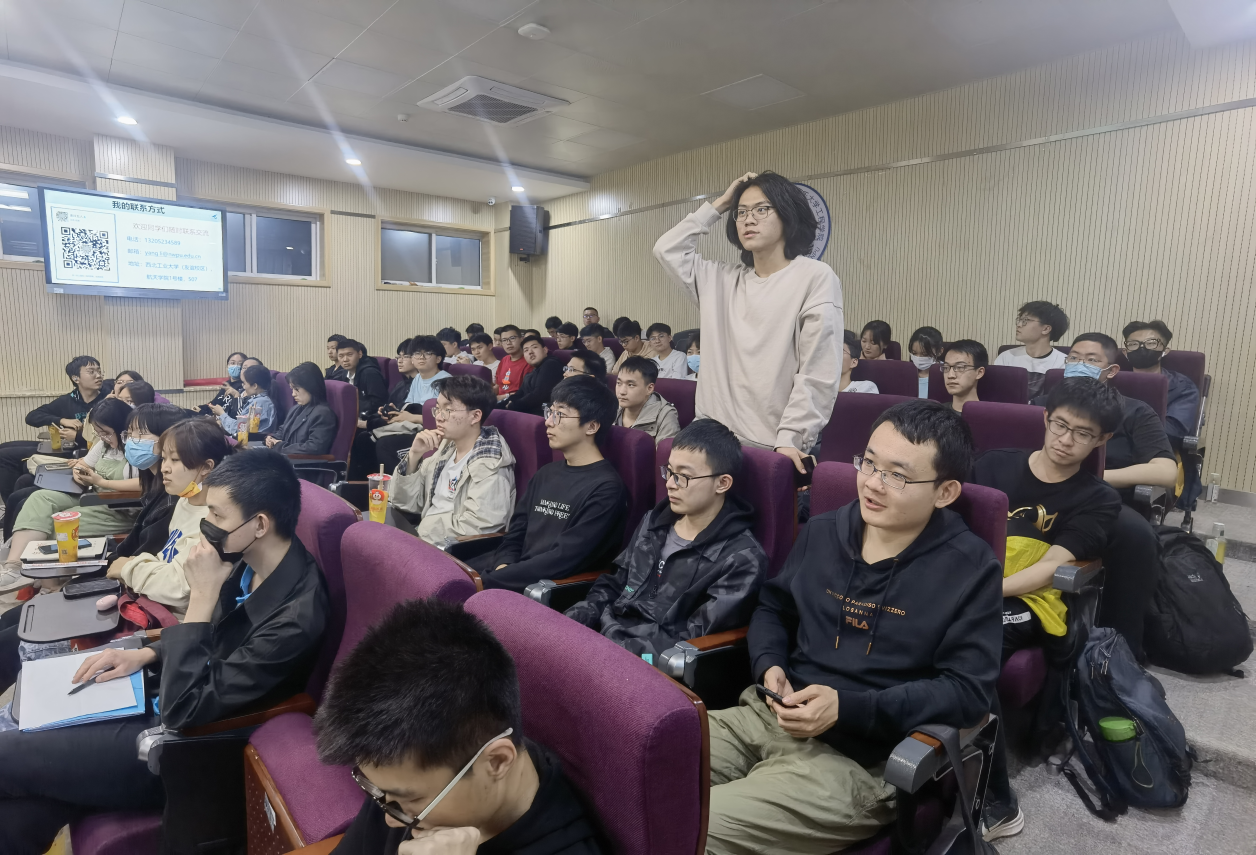 介绍完相关学术内容后,报告会进入互动环节。同学们对于李老师的研究方向、产业发展前景、及其介绍的相关专业知识展现出极大的兴趣并提出了相关问题,李老师对同学们的问题进行了细致耐心地解答,还为发言的同学准备了小礼物。随后,李老师为同学们介绍了自己的留学经历,为同学们的未来升学提供规划建议。李老师鼓励同学们,要依托西工大的优势发展平台和优质的学习教育资源,加强专业学习,广泛了解相关领域知识,立志成才,践行“公诚勇毅”的校训,在以后的学习职业规划中为祖国的科研事业发光发热。报告会在同学们的热烈掌声中圆满结束。