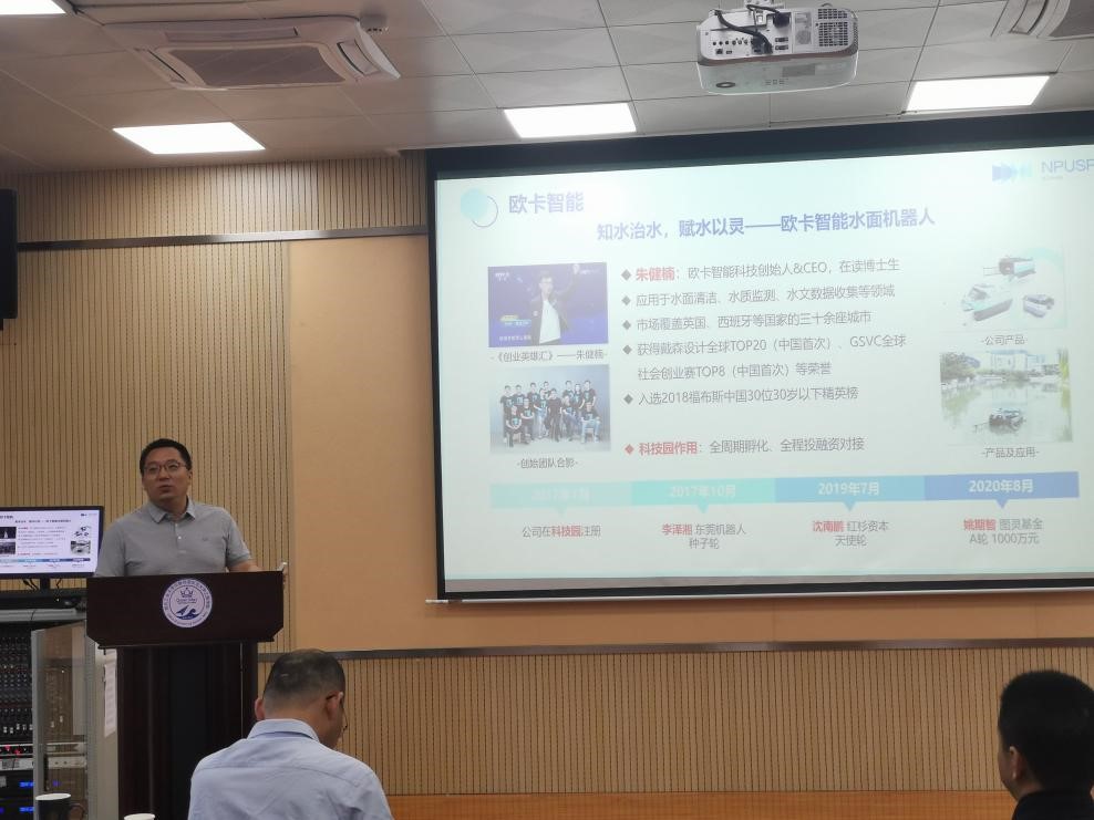 顾振芳副主任通过老员工创业的成功案例,生动形象地解释了大学科技园的作用。他特意提到,大学科技园为航海公司“智能空气声纳系统”创业项目,提供了创业辅导、空间场地、创新基金,投资事宜以及宣传推介等全方位扶持的成功事例,说明大学科技园是为有创业意向的同学们提供实现梦想道路的良好平台。