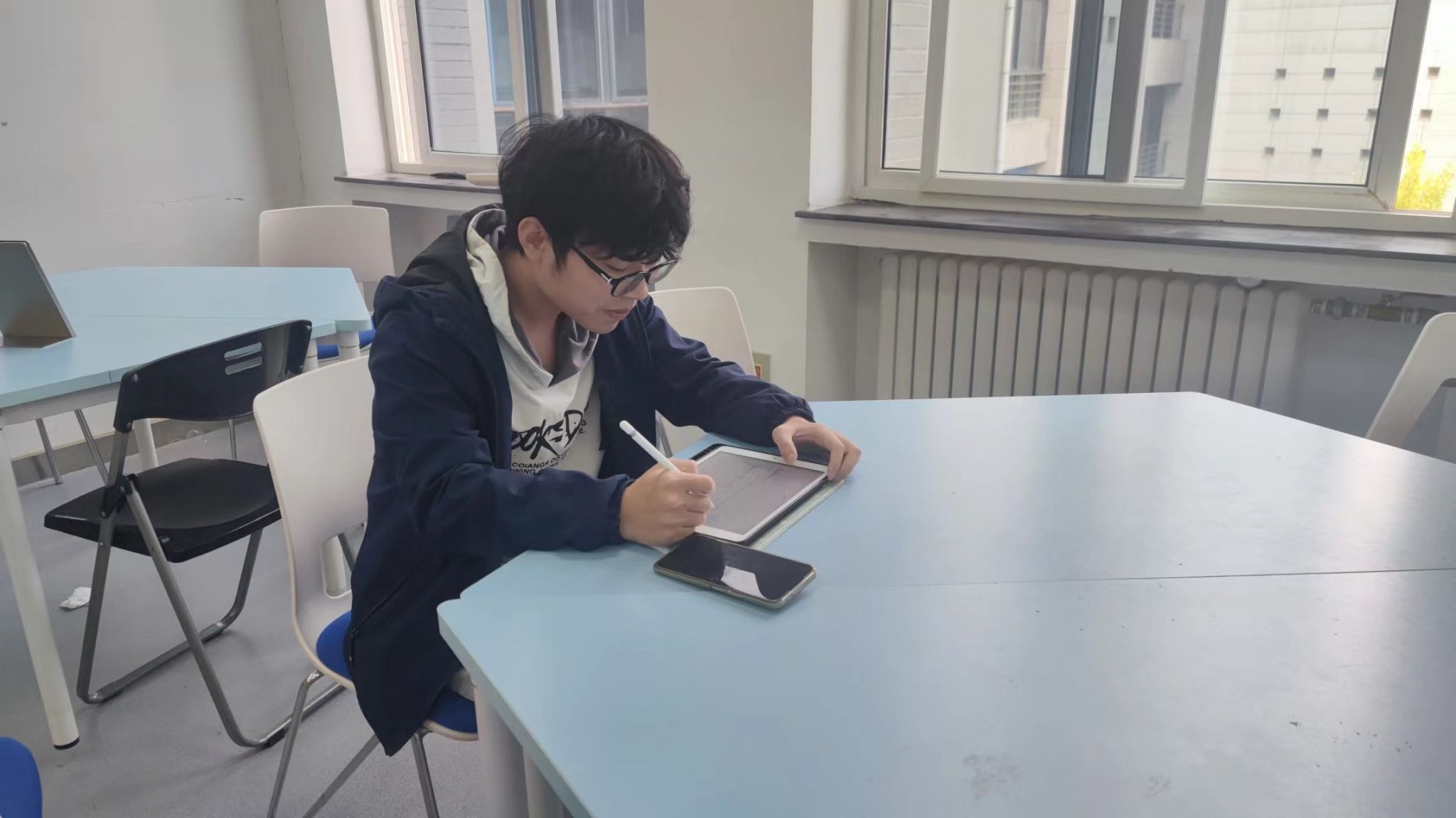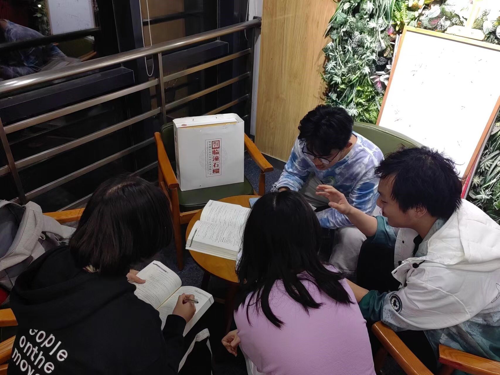 (图为线代志愿者在公司公共区为同学答疑解惑)