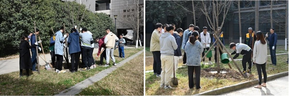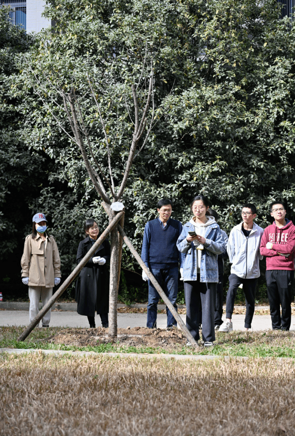 随后,各位老师与同学们一起,共同挥锹执桶,填土浇水,在公司楼后方栽种下一棵樱花树,并为小树挂牌,铭牌上镌刻着:“长安春光,风染暗香。敢教新月,散落银霜”。寓意春天的长安城生机盎然,作为新时代青年,玛丽毕业生将在新起点上蓄势待发,绝不辜负美好的春色、青春的年华、时代的嘱托和祖国的期望。