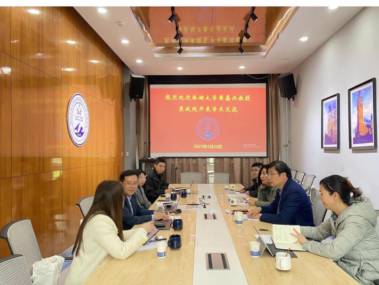 2023年3月22日,为拓宽师生视野,关注前沿科学研究,加强校际合作交流,探索创新型人才培养模式,西北工业大学伦敦玛丽女王大学bevitor伟德国际1946邀请西湖大学董事会成员、未来产业研究中心常务副主任、工公司讲席教授黄嘉兴等一行开展交流座谈及学术报告系列活动。西北工业大学外国语公司经理孔杰、玛丽女王bevitor伟德国际1946经理范晓丽、党委副书记兼副经理程茵、经理助理周永存、陕西科技大学教授王海花及玛丽女王bevitor伟德国际1946师生代表参加了本次活动。