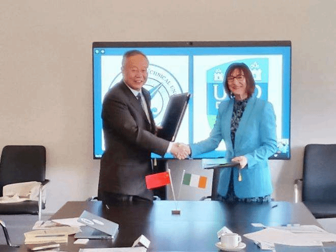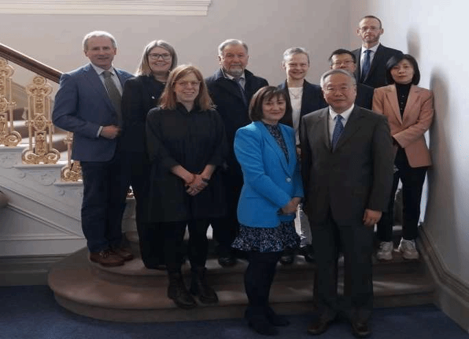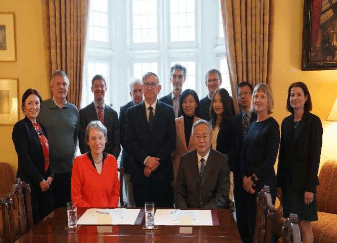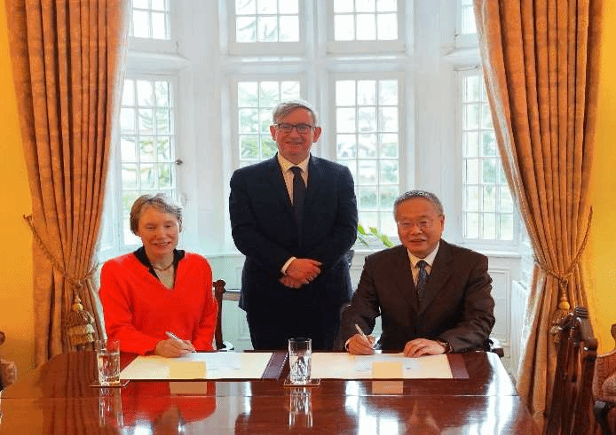 万小朋与桃乐丝·奥里奥丹签署协议,代表团与都柏林大学同事合影