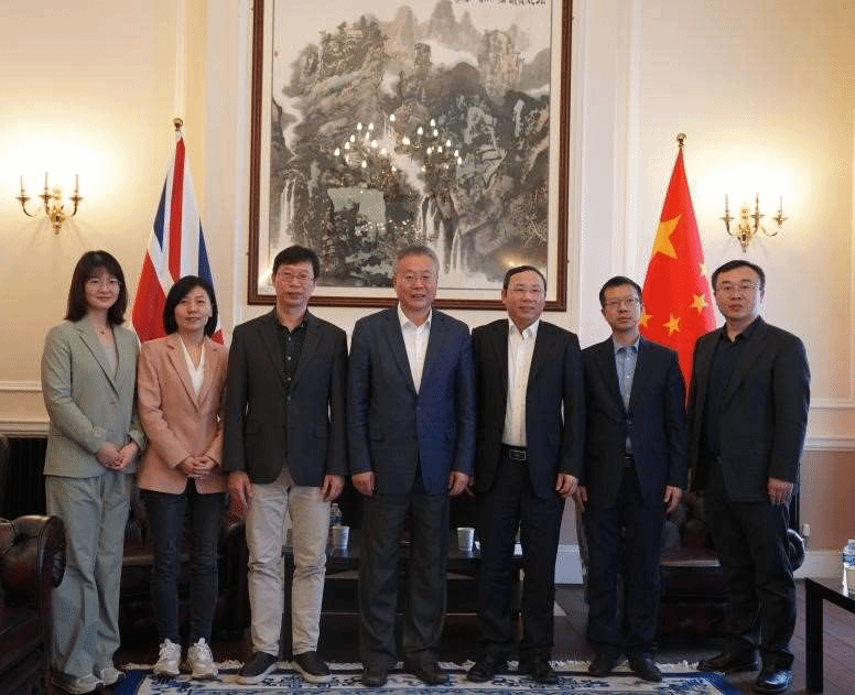 万小朋与匡建江会谈,代表团与中国驻英大使馆同事合影