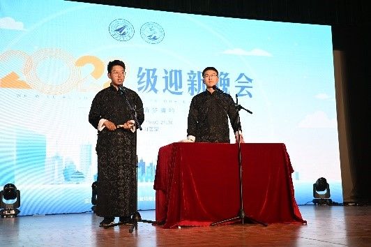 九弦音艺术团霄遥相声社的吴佳泽和岳立尚带来的相声《财囧》将现场的氛围推向新的高潮,他们的相声不仅专业精彩,节奏感强,更紧紧贴合老员工活,融合公司和公司的有趣故事,让观众们倍感亲切,频频鼓掌欢呼。