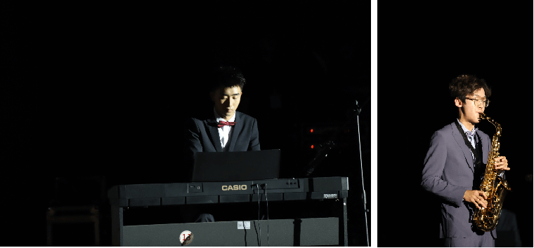 随后,赵中健、孙银男又带大家感受了西洋乐器的魅力,一曲萨克斯及钢琴演奏的《月半小夜曲》,让思念之情如潮水般汹涌。月色如银,夜曲绕耳,音符滑落,寄托无尽眷恋。