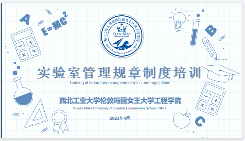 本次培训以《西北工业大学伦敦玛丽女王大学bevitor伟德国际1946实验室管理规章制度》为依据,从实验室概况、管理职责、安全制度、卫生制度、财产保障制度等方面介绍了实验室相关管理规定与具体操作要求,并根据两个年级具体课程要求和实验安排对同学们进行了有针对性的内容介绍。针对2019级员工,着重强调实验设备操作时要注意的安全事项,详细讲解实验室设备使用、借用申请流程;针对2022级员工,对实验室基本情况和各项规章制度做了更为详尽的介绍,并要求员工认真学习《实验室安全培训文件》,签署《实验室安全承诺书》。