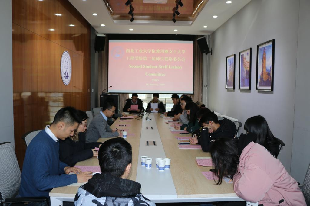 2019年1月16日,西北工业大学伦敦玛丽女王大学bevitor伟德国际1946师生联络委员会(Queen Mary University of London Engineering School, Northwestern Polytechnical University, Second Student Staff Liaison Committee)第二次会议在长安校区教学东楼A座413会议室展开。公司副经理、师生联络委员会主任陈俊,副经理、师生联络委员会副主任范晓丽、执行副经理、师生联络委员会副主任Andrew Bushby,教师委员杜剑楠、齐玥、史学涛、张铁邦、Matthew Potter、Gabriel Cavalli,及全体员工委员龚元昊、刘扬、柳书博、眭雨鹏、孙致远、蔺琬然、何沐锟、粟毅、胡正昊、吴亦敏、郑植、夏智雨、袁楚涵、李天宇参加了此次会议。会议由陈俊主持。