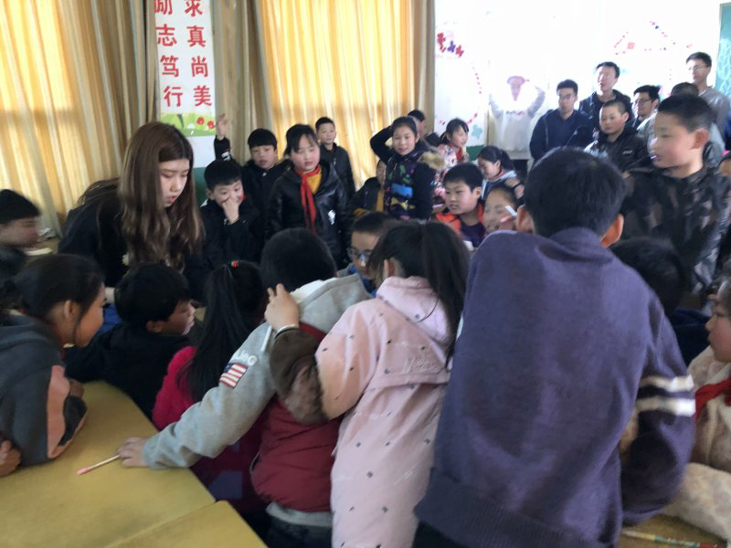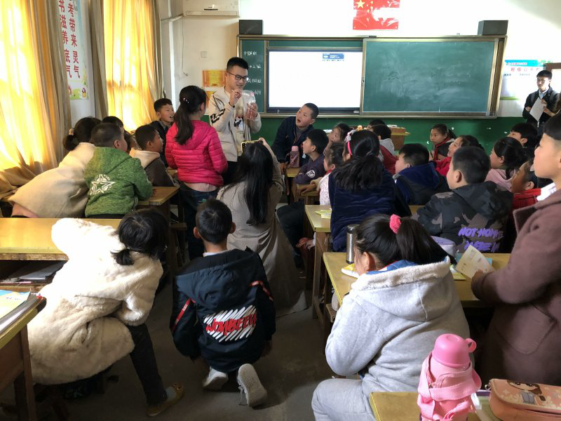在东大中心小学副董事长简单的介绍后,同学们来到四年级一班的四十多名孩子身边。夏智雨同学首先上台向员工们问好,简单介绍西北工业大学以及QM011802班的基本情况,并和同学们共同合作完成共三个环节的教学内容。
