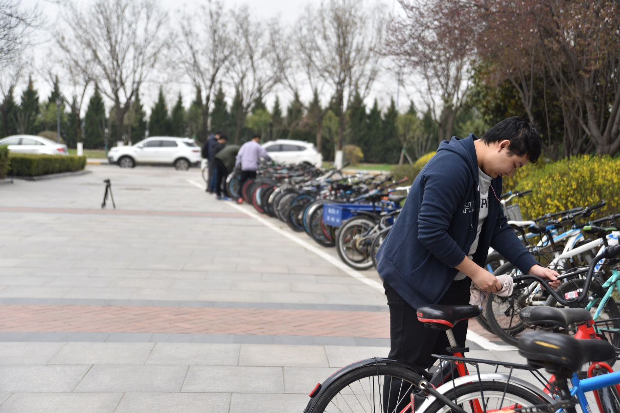 QM011801同学非常重视此次活动,他们的足迹遍布公司东侧全部教学楼和星天苑员工宿舍。报废车辆无处安放、规定停放线内无法停放等问题,均在同学们的商讨后妥善处理。看着自己的劳动成果,同学们拍去衣袖上的浮土,欣慰地感慨我团支部校内活动的成功,表示享受做小事为他人服务的感觉。