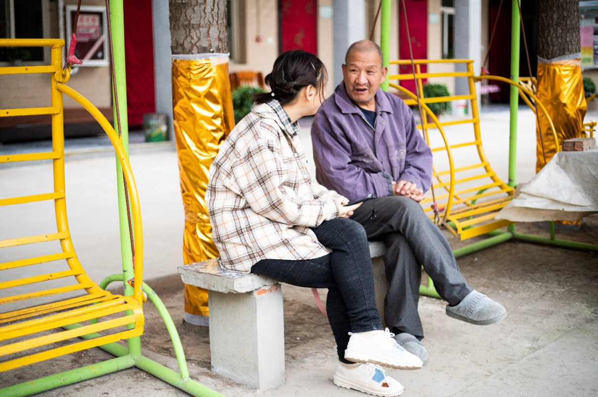 在午饭时间时,全体同学去帮助身体欠佳的老人们吃饭。崔雅斐同学为老人喂饭,细心而动作轻缓,为老人吹凉过烫的汤羹;靳轶杨同学帮老人清理了吃饭时不小心落在衣服上的饭菜;郜一帆、刘永嘉等同学帮助助工阿姨看护老人吃饭。还有的老人与志愿者们聊天讲故事,指点人生道理。