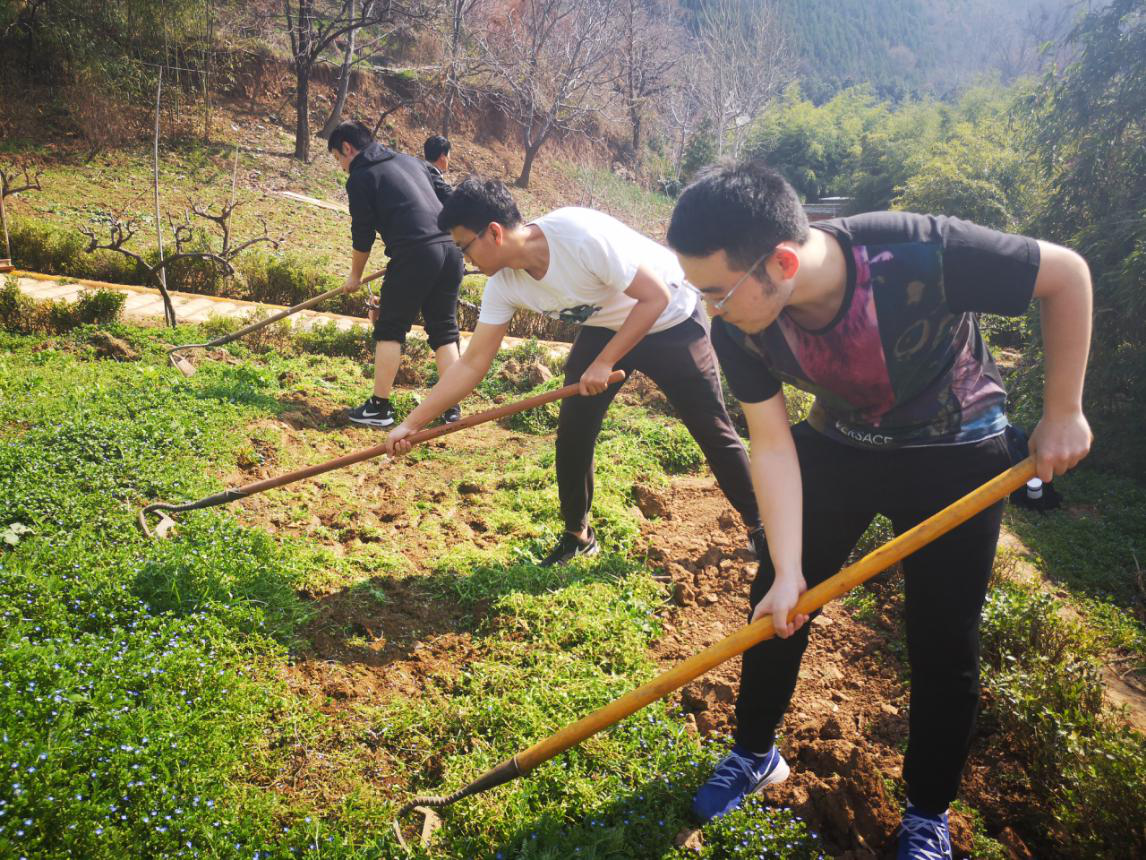 由于团支部大部分同学都是第一次参加劳作活动,一开始大家都很生疏和拘谨,对着一大片土地一筹莫展。有几个活跃的男生首先拿着农具开始尝试,在几次尝试后,逐渐掌握起正确的方式,逐渐熟悉的同学帮助还比较生疏的同学,在大家的互帮互助下,同学们逐渐在劳作中得心应手。