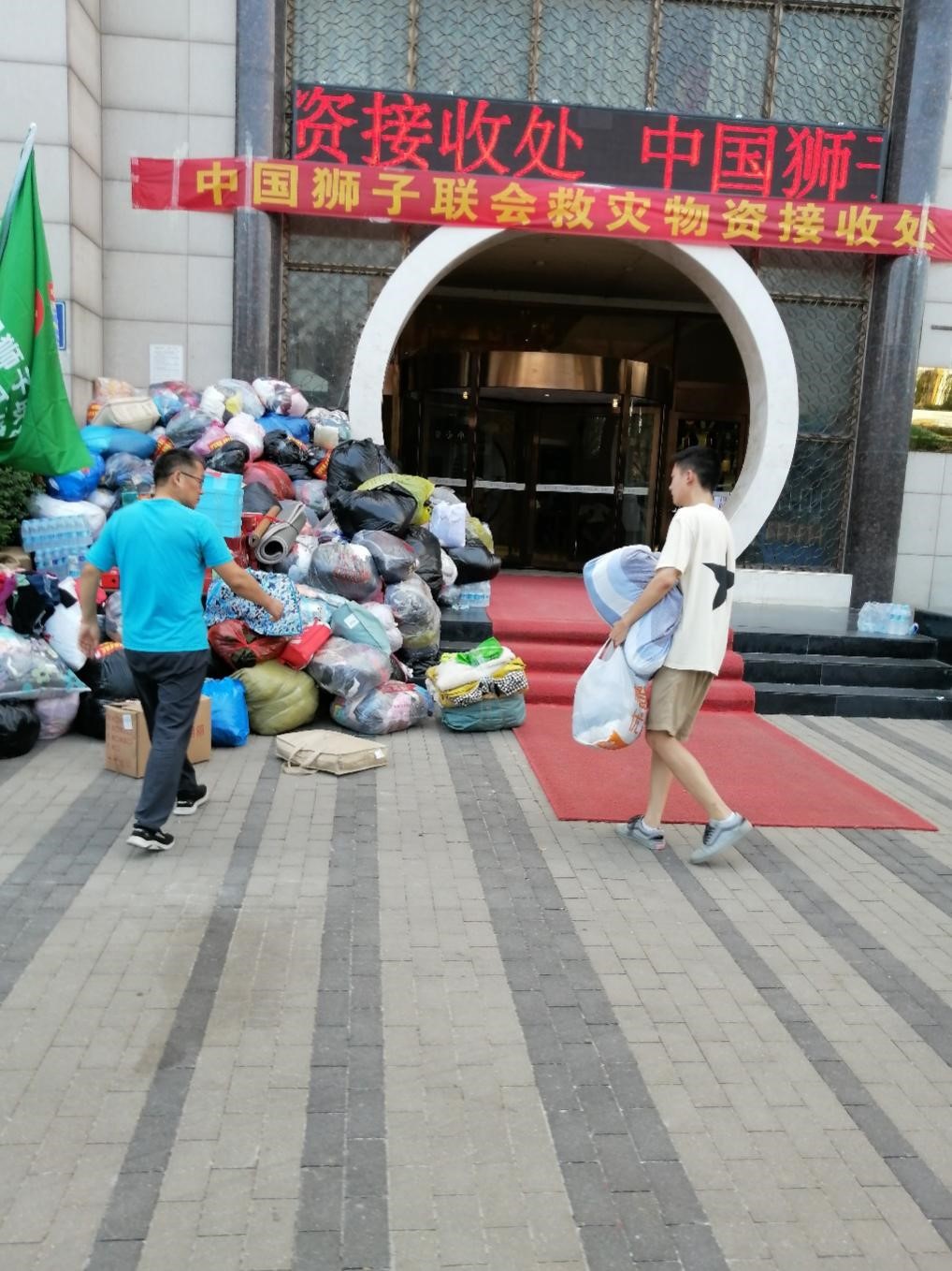 2019级同学郑非凡则在暴雨灾区郑州市二七区街道参与捐献、搬运物资的志愿活动。此次志愿活动由中国狮子联会陕西代表处组织,在陕西省内调配矿泉水、方便面、面包、药品等救灾物资,于7月24日将第一批救援物资运至郑州抗灾一线。在此次捐款捐物的活动中,郑非凡同学和家人尽可能多地捐赠了被褥和衣物,希望能给重灾区的人民带去一些温暖。