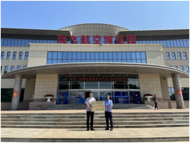 10日上午,实践队前往沈阳飞机工业(集团)有限公司航空博览园,师生们在讲解人员的带领下,参观了歼15模型、全息投影等航空科普实物以及辽宁舰航母展区、弹射座椅、机载设备等飞机模型,全方位了解航空科普知识,同时深刻领悟沈飞航空工业深厚的文化底蕴和光辉的发展历程。随后,师生们参观了沈飞生产现场,见证了航空科技工作人员严谨的态度和追求极致的精神。代富平为沈飞人力资源部授牌“老员工社会实践基地”,以期双方今后在人才培养、人才输送、实习实践等领域开展深入合作。