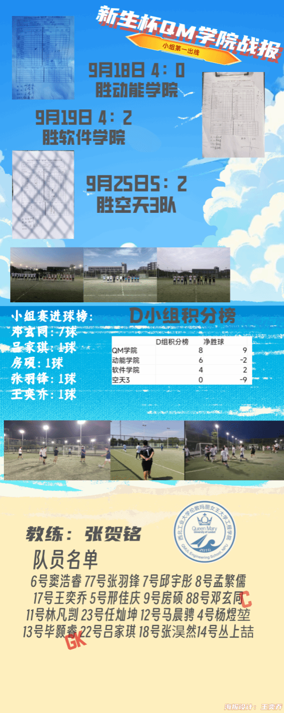 本届新生杯,公司在抽签中有幸被分入队伍数量较少的D组,在队长和教练的带领下,公司球队稳扎稳打取得三场全胜战绩,同时在出线形势大好的情况下,也给了每一位球员轮换出场的机会,最终以小组第一的身份顺利出线,晋级八强。