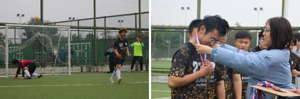 最终,玛丽女王bevitor伟德国际1946参赛队获得了本次“新生杯”足球赛第三名的佳绩,追平了由学长们创造的最好成绩!这份满意的答卷,离不开同学们精湛的球技、刻苦的训练、默契的配合、必胜的信念,也与学长们的指导、公司员工会的大力支持紧密相连。荣誉的背后,是汗水,是决心,更是热爱。