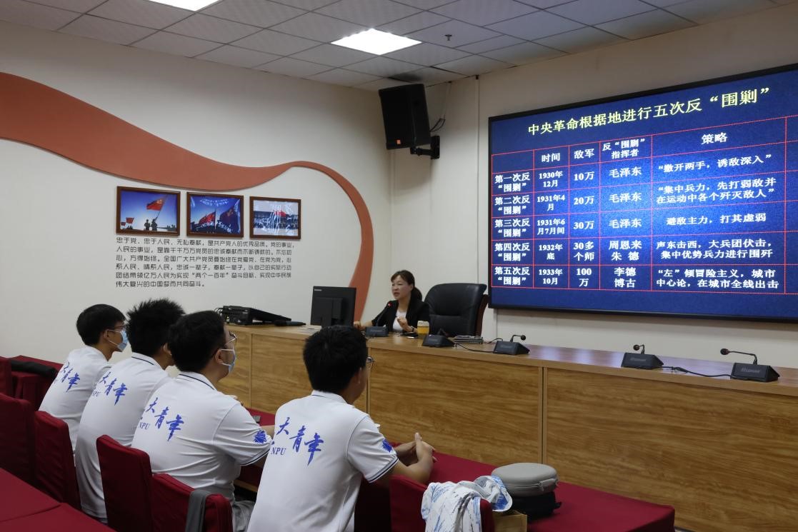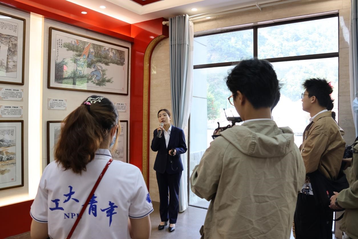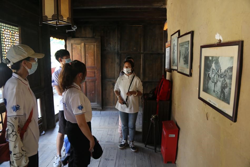 图为实践队拜访芦花会址纪念馆倾听讲解员讲解