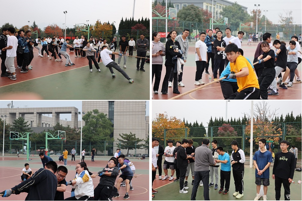 首先进行了团体拔河项目,十二个班级队开展小组赛,两两对抗,胜者进入淘汰赛。淘汰赛六队分三组两两对抗,胜者进入决赛。现场欢呼声,跺脚声融为一片,随着一声声号令,比赛进入高潮。最终,QM012201班大获全胜,夺得本次拔河大赛冠军。