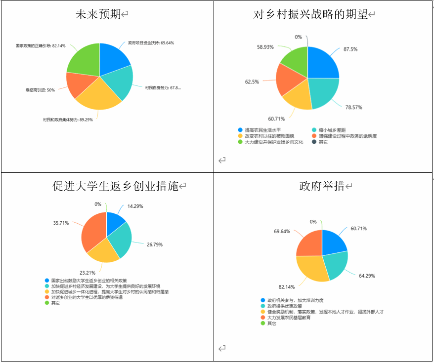 本次调研围绕乡村振兴现状、未来发展方向、人才建设等方面设计问卷,调查了居民的满意度及老员工返乡创业情况,为乡村人才振兴,乡村文化建设贡献工大学子的力量。